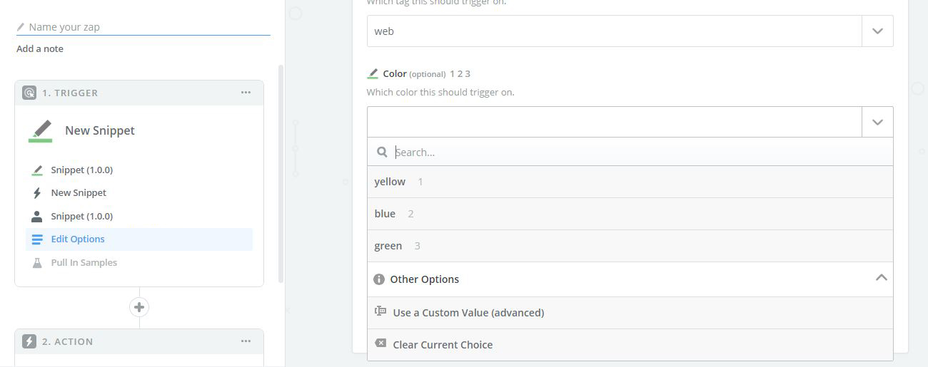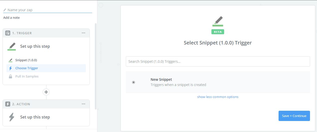 3. Select Trigger “New Snippet” - Triggers when a new snippet is created.