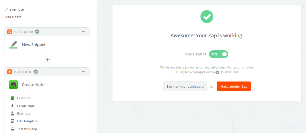 For that all your snippets can be copied through Zapier in another app – Evernote.